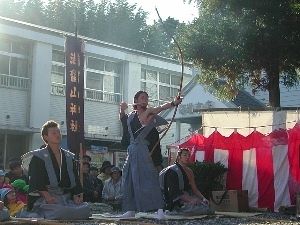 八幡神社の例大祭で、大漁満足と家内安全を祈願する弓引き(お的)神事が祭りの要。答志では消炭と布海苔で練り上げた墨を塗った「お的」を若者たちが担いで町の中心部の坂を駆け上がったところで、弓が引かれる仕草と同時に待ち構えていた男たちがお的の墨を奪い合う。その墨で家の戸口や船に八幡神社の神紋であるマルハチマークを書き、大漁、家内安全を祈願するとかなえられると伝えられている。お的行事は16日に行われる。