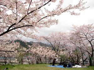丹波吉野と称される桜の名所。約300本の桜が咲き誇り、花見客でにぎわいをみせる。