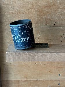 「peace」の缶が傾いた作品等を展示