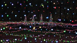 旭川の冬空に輝くイルミネーション