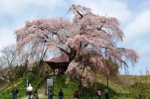 “三春滝桜の娘”といわれるしだれ桜で、樹齢は約400年。妖艶なピンクの花が特徴。この桜の下には地蔵堂があり、昔から赤ん坊の短命、夭折の難を逃れるため、この地蔵に願をかけていたといわれている。また、すぐそばに4月中旬~5月上旬に見頃の「ハナモモ回廊」もある。