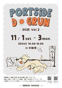 大磯港でドッグランを開催!海水浴場発祥の地である大磯町で、のんびり流れる時間をワンちゃんと過ごしてみては?事故防止のため、小型犬・中型犬・大型犬エリアの全3区画を用意。マルシェ(2日(日曜日)・3日(月曜日・祝日)のみ)やキッチンカーの出店もあり。11月2日(日曜日)・3日(月曜日・祝日)は、大磯らしい魅力あふれる産品「めいどいんおおいそ」の販売も予定。