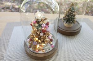 デコレーションしたミニチュアツリーを小さな木製トナカイのオーナメントと一緒にガラスドームの中に飾り付け。LEDワイヤーライトがドームの中で輝く! ラグジュアリーなクリスマスを演出。 ※なくなり次第終了。幼児は保護者同伴で体験可能。