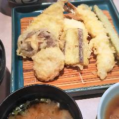 ≪創業昭和60年≫ 職人が目の前で揚げた天ぷらをリーズナブルに食べられるお店。 人気☆楽ちゃん定食(野菜4品・魚3品・ごはん・味噌汁付)950円