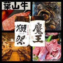 葉山牛炙り寿司付 三崎鮪と牛肉コース4350円飲放題付 八海山生原酒付又3名様以上ハーフ三崎鮪カブト焼付