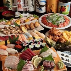 綱島駅徒歩1分 寿司と鮮魚を味わうなら「魚鉄食堂」 <彩りコース>刺身7点盛り合わせ&寿司盛り合わせ付 6品 5000円 店舗丸ごと貸切で40名様迄OK!広々お座敷席も完備