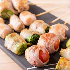 熊谷の路地裏にひっそりと佇む和の空間。野菜やフルーツなどの様々な具を豚肉で巻いた野菜巻き串専門店。