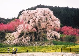 樹齢300年ともいわれる桜の古木。県の保護樹。大坂の陣で活躍した、戦国武将・後藤又兵衛にちなんで「又兵衛桜」と名付けられた。後藤家の屋敷跡に位置し、見頃は3月下旬~4月上旬。周辺には桃の木も植えられており、3月下旬~4月上旬にかけて一斉に咲き誇る。