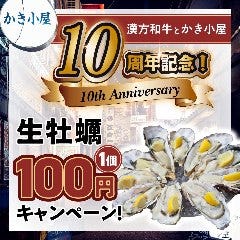生牡蠣1個100円キャンペーン実施中!この機会に美味しい牡蠣とお酒をお楽しみください。