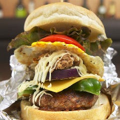 ◆高知をまるごと楽しむ!ご当地名物『龍馬バーガー』 ◆中央公園北側にある、ゴーイングプレミアムファクトリー ◆高知食材たっぷり!昼はカフェ、夜はBar利用で◎