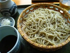 旭川空港からすぐ、豊かな自然に囲まれた隠れ家風の手打ち蕎麦の店。 季節の花が窓越しに見えます。