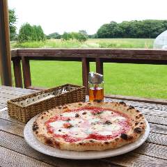 【ファームレストラン】 搾りたての牛乳で毎朝作るモッツァレラチーズ。 新鮮なチーズを使ったピッツァとイタリアン料理をお楽しみいだけます。