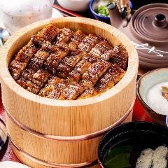 お食事利用から、慶事、お祝いの席などに上質なうなぎ料理をどうぞ。 職人手づくりの桶で提供する当店名物の「桶まぶし」などメニュー豊富にご用意。