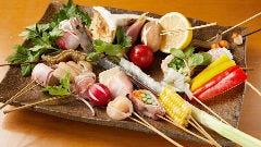 天満橋にある京町屋風の静かな串料理店。ネット満席でもお電話を!! 2名からOK!季節のコース3300円より お一人様1コース、1ドリンク制でお願いします。
