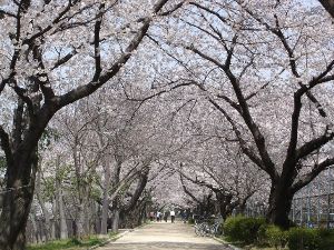 国道43号と国道171号の間の武庫川沿いには、約2000本のソメイヨシノと八重桜が咲き、堤防に桜のトンネルができる。特に阪神武庫川駅北側と西武庫公園周辺は、本数が多く見応えあり。堤防の横には芝生広場もある。