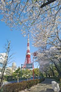 桜に彩られた東京タワーが見える公園!