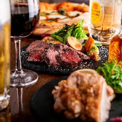 【大鳥居駅1分】 備長炭炭火焼きの大山どりや500℃窯で焼くナポリピッツァが名物 ワインも焼酎も楽しめるバルの飲み放題付コース4,400円〜 ピッツァはテイクアウトもOK