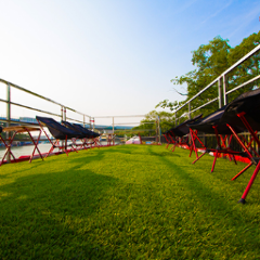 2階建てのグランピング船「メリーグリーン」 定員15名〜60名の船を貸し切ってBBQ!2階テラス席から眺める大阪の街は絶景です!