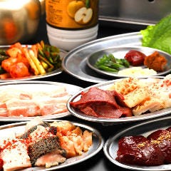 人気メニュー厚切り牛タン・レバー・ハラミを1皿でご堪能 20種の豊富な鮮度抜群ホルモン 当日予約もOK!2時間飲み放題付・13品以上の宴会メニュー