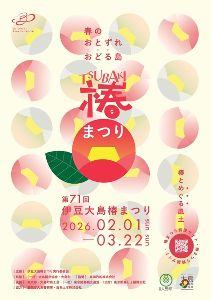 泉津地区の大島一周道路沿いには、椿の大木が道の両側から覆い被さるような見事な椿のトンネルが続いている。太い幹から何本も枝分かれして、晴れた日でも薄暗い。トンネルは約100mにも渡って続き、中には樹齢約200年にも達する古木も少なくない。1~3月の開花時期が見頃だ。