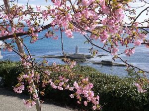 海の臨める公園の河津桜