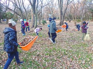 落ち葉かきして原っぱをまもろう
