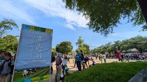 ソメイヨシノ220本、ヤマザクラ182本をはじめ6種類479本の桜が楽しめる。6月にはあじさいの名所として知られるこの公園は、公園全体が山になっており、園内から市内を一望できるスポットも。山のウォーキングを気軽に楽しみながら、花見をしよう。
