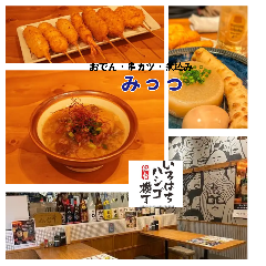 【仙台駅直結】今話題の《いろはちハシゴ横丁》内にある 姫路おでん・大阪串カツ・仙台牛の牛すじ煮込みが名物の『みっつ』 ◆昼呑み歓迎♪