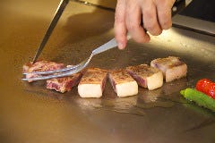 ■雄大な自然の元で育った≪特選石垣牛ステーキ≫をご堪能下さい。 ■シェフの鉄板焼き捌きも見どころ◎ ■高級感のある落ち着いた雰囲気は記念日・旅行等にもおすすめ。