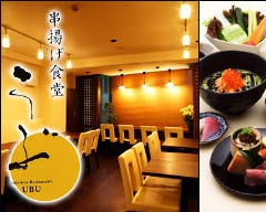 『串揚げ うぶ』 では常時30種類以上の豊富な串揚げ、 料理人が心をこめた季節の料理、利酒師厳選の日本酒、 具だくさん味噌汁など御用意しております!