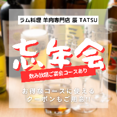 不定休日あり ※平素より羊肉専門店 辰TATSUをご利用いただき、誠にありがとうございます。誠に勝手ながら、当店は2025年11月末日をもちまして閉店させていただくこととなりました。これまでご愛顧いただきましたお客様に、心より感謝申し上げます。最終営業日までスタッフ一同、感謝の気持ちを込めておもてなしさせていただきます。今後とも変わらぬご愛顧のほど、よろしくお願い申し上げます。 スタッフ一同