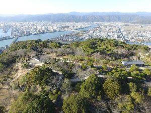 三層六階の天守をもつ平山城[ひらやまじろ]。初代土佐藩主・山内一豊が慶長6年(1601)に築城を開始。慶長16年(1611)、二代藩主・忠義の時に完成した。その後焼失したが、宝暦3年(1753)に再建。天守をはじめ、詰門[つめもん]や東西の多聞櫓[たもんやぐら]、黒鉄[くろがね]門は、いずれも重要文化財に指定されている。天守のある本丸は、全国で唯一天守・御殿などの建造物がセットで残る。追手門そばの板垣退助像や山内一豊像、その妻の千代像も見逃せない。