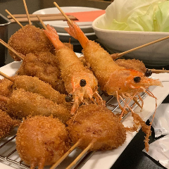高松市片原町駅徒歩3分 串揚げ居酒屋 細かいパン粉を使用してあっさりと食べられる串揚げが特徴 旬の食材を用いた種類豊富な串揚げ料理をお愉しみください