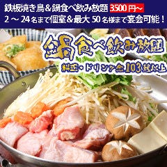 ■全103~138種<鶏鍋&炭焼き>食べ放題&飲み放題コース!3500円~ ◇串なし焼鳥&鳥刺しの3時間飲み放題コースで新年会! ◇最大50名様迄!少人数OKの個室完備