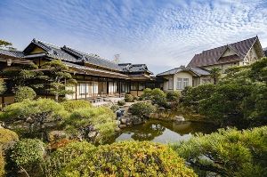 江戸時代に山陽道の宿駅となり、参勤交代の諸大名が宿泊する本陣が設けられて宿場町となった神辺宿。宿場内には三日市の尾道屋菅波家(西本陣)と七日市の本荘屋菅波家(東本陣)があったが、この「神辺本陣」は西本陣のこと。筑前黒田家専用の本陣だったといい、延享5年(1748)に建てられた屋敷は黒塗りの土塀に囲まれ、屋敷内には御成の間や二の間などが残り、当時の様子を物語っている。屋敷全体は広島県指定史跡、建物は広島県指定重要文化財となっている。